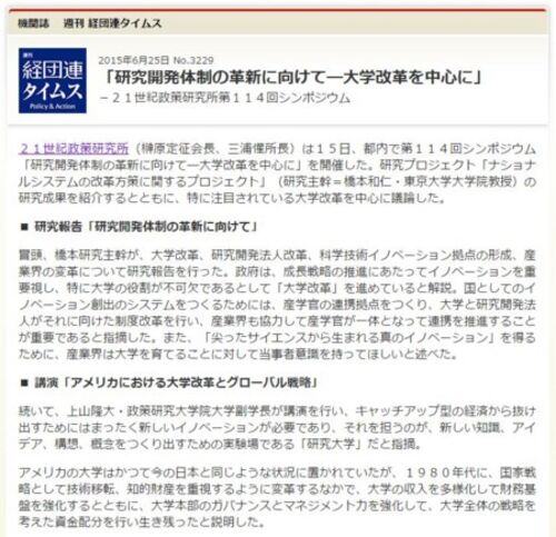 high190です。 産業界と大学との関係性が変化してきていることについて、最近色々な場面で資料等から感じます。ある意味、国家戦略としての大学改革を産業競争力会議などで主導し、その議論をベースに大学改革の諸政策が動いているということです。 では、そ…